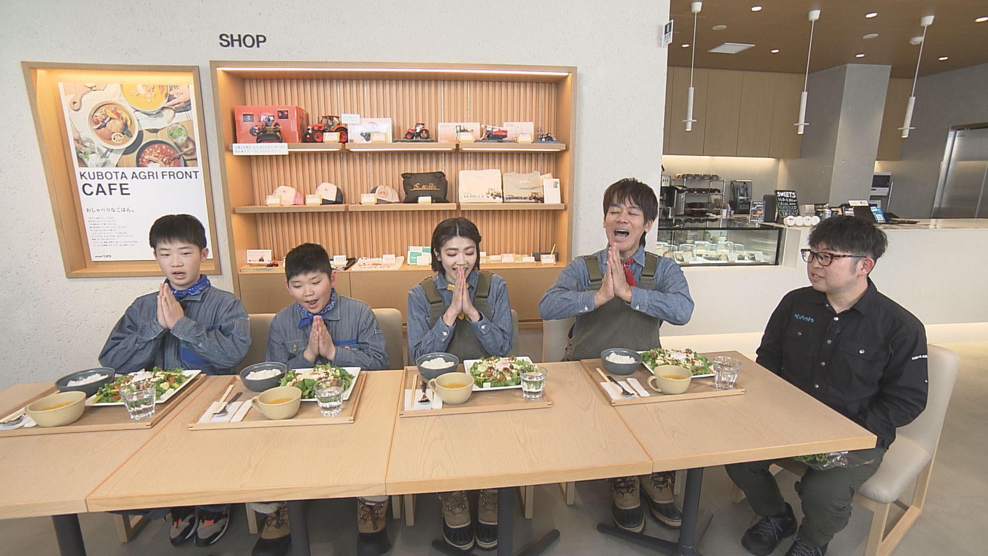 Next, they explore Kubota Agri Front in Kitahiroshima’s F Village, where robots and AI are used for farm management. The children even taste freshly harvested leaf lettuce from a factory, amazed by its flavor.
