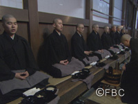 A pesar de su importante cargo, el actual tenzo, Ryokyu Miyoshi, sigue cocinando codo a codo con los monjes aprendices. La cámara sigue al tenzo Miyoshi mientras prepara la comida en Eihei-ji.