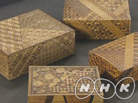 One of Japan's traditional wood crafts, Yosegi-zaiku marquetry combines wood pieces of a wide range of colors and shapes to produce gorgeous designs to decorate desks and boxes. This art spread throughout Japan in the 18th century. For puzzle boxes, many unique pictures are hidden in the patterns, and the boxes themselves are fitted with fascinating mechanisms.Japanese marquetry attracted Western people from the latter half of the 19th century, and marquetry craftsmen, combining the wood pieces with sprinkled picture, produced exquisite gems of art.