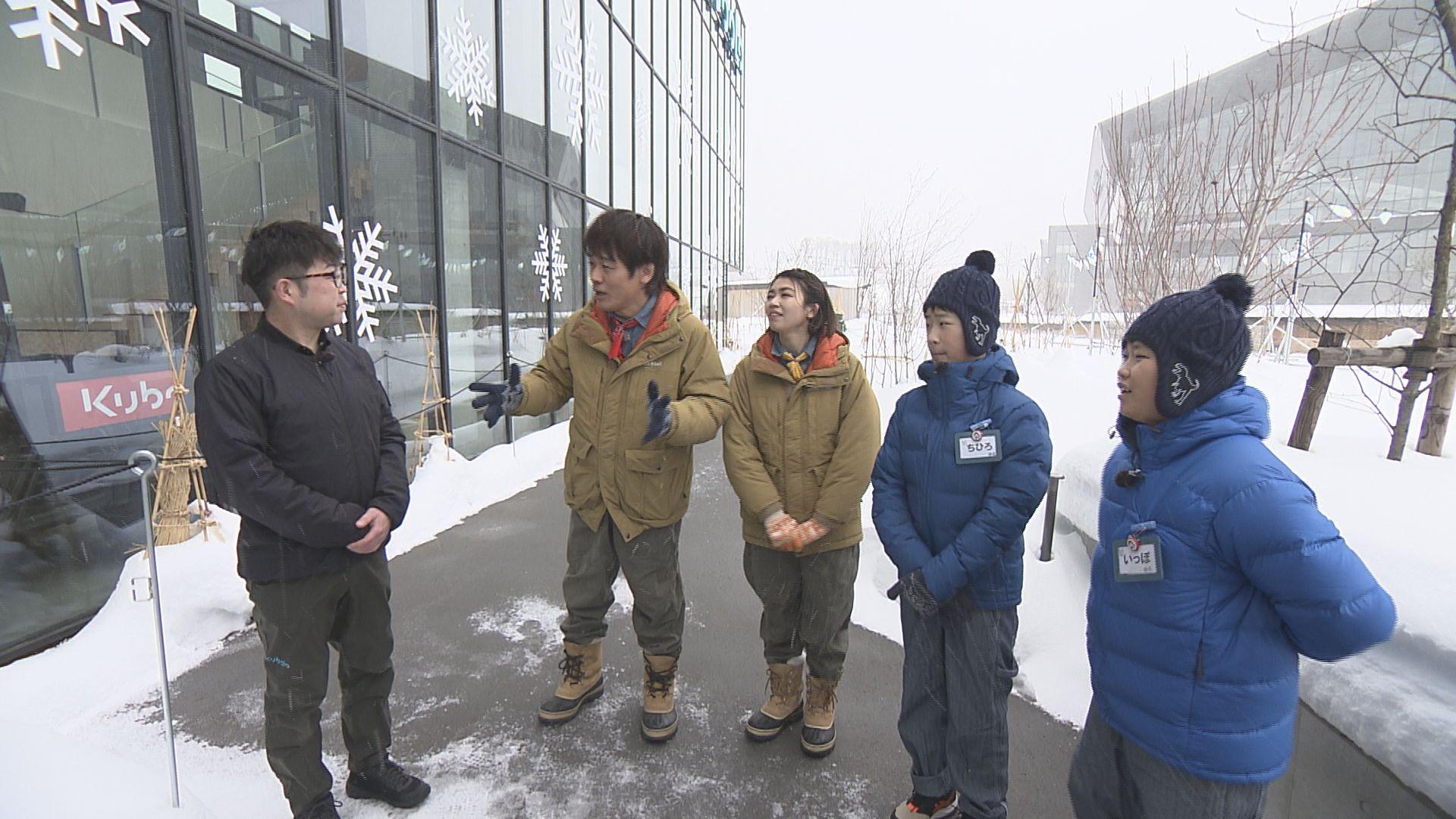 This episode’s theme is to learn about the future of agriculture. Together with two kids, the hosts visit new facilities in Hokkaido. At Hokkaido University’s Smart Agriculture Education and Research Center, opened in summer 2023, they try advanced technology—remote-controlling a farm vehicle more than 1,200 km away, and also try operating an unmanned tractor in the university fields.